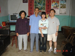 On Saturday June 26, we started earlier at 7:30am to drive almost two hours (part of the road is quite rough) to the town of Xian Xia and the nearby villages to visit students sponsored by Alec Johnson and others in US. The first stop is Zhengyu Zhou’s home. The town is quite old and interesting. His house was build more than 200 years ago in Qing Dynasty. The house has 4 parts with the middle an open space. His family and three other families share the open space while each family has one corner as their own. His father told me that the neighbors get along really well. His father is a farmer trying hard to support family. The family include his grandparents in their 70s, his father, and himself. His grandma is almost blind, and his grandpa has serious back problem. His mother divorced and left quite a few years ago. This is a very nice family, and his father can simply not support the whole family. They appreciate Alec’s support and visit very much.