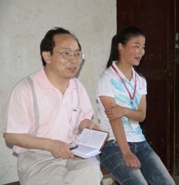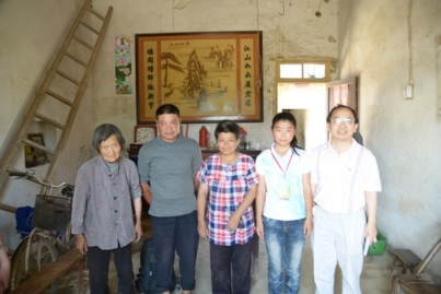 Lu Qinmeng (right-front), a 8th grader born in August 1999. She is very good at English and Chinese. She lives with her grandparents and her father. Her moth left her when she was 1. Her father was seriously injured in a car accident in 2006 and has had retarded ever since. Her father now works as a cleaning staff at a local company. The back row are Mr. Hu and four volunteer undergraduates from UW-Madison (teaching at her middle school for 10 days). The front row include her grandparents and me. She has been sponsored by Victor Chan and Daisy Jiang. |