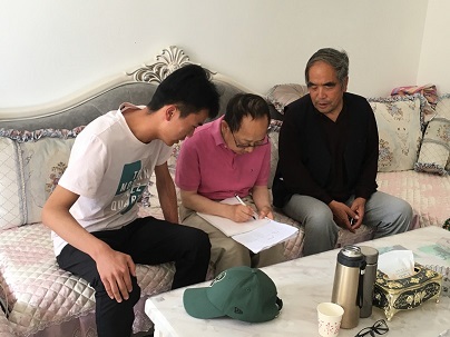 On Saturday June 29, volunteers and I visited 6 high schoolgraduatets at their homes.This is the first time I visited Huining. It was a surprise that their high school students have classes on Saturday and Sunday morning so we did not get a chance to visit non graduates' homes. We did meet with them on Friday. We started at 7am and finished at Huinig around 5pm .It isamazing and surprising (to me) to see how big and beautiful the mountains are. It was not an easy drive, most time we are on road.We started with a student who has a very nice apartment withher grandma at the city thanks to government's generous policy to replace an old crapy farmer house with a new modern apartment when they need the land (and adding some money compesentation). Then drove about 90 minutes mountainous road to the 2nd student's home. Her grandparents were waiting for us with nice food for lunch. This is the first time in my 15 years experience to have lunch at a student's home. We don't like to bother them. This family is simply too nice to refuse. After early lunch, we drove two more hours (without meeting one car) to reach the third poor student's family. Then we drove about one hour back to city to visit 3 more students at their homes. The last one is at a rented room with his mom. We originally planned to take them to see his own home in countryside but it would take another 90 minutes (one way), it was almost 5pm so we gave up.