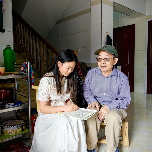 | This little girl is outstanding in school, likes math and English. She lives with her grandparents, her parents, and her older sister who is in college majoring in English. Her father got injured before and her grandpa lied in bed due to injury and illness. In the photo included her mom and her grandpa. |